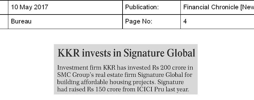 KKR invests in Signature Global
