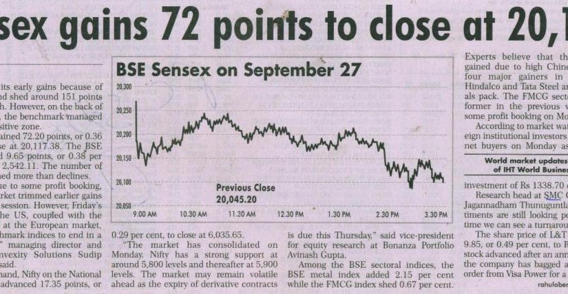 Sensex gains 72 points to close at 20,117